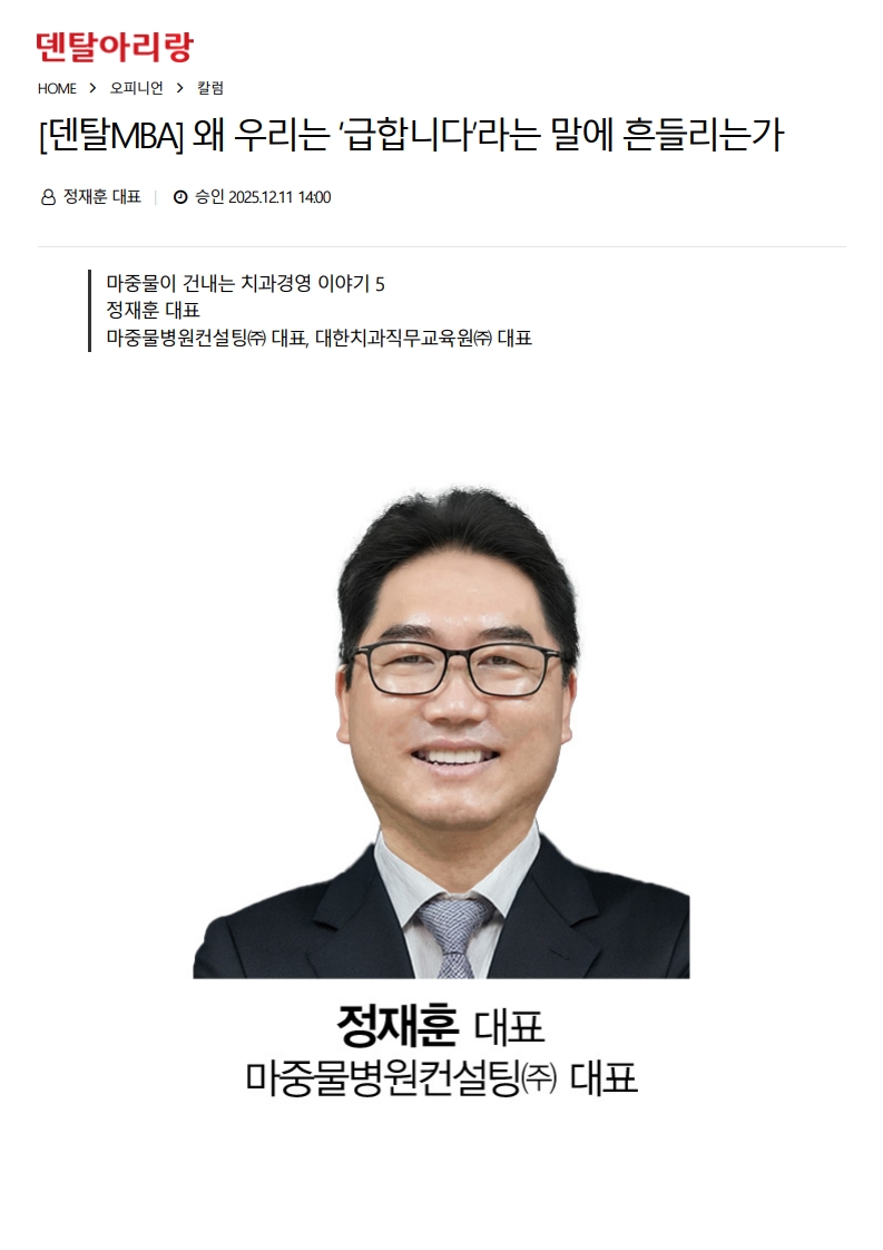 [뉴스] [덴탈MBA] 왜 우리는 ‘급합니다’라는 말에 흔들리는가(25.12.11)